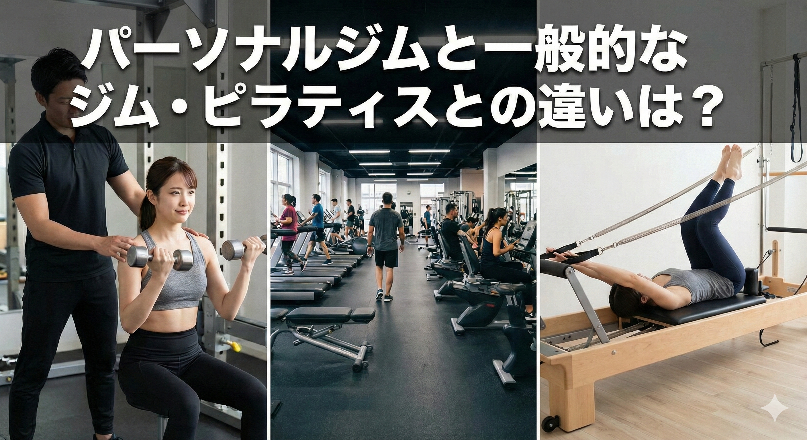 運動を始める際、パーソナルジムや一般的なジム、ピラティスと比較して迷う場合があります。それぞれの違いを理解し、自分の目的や性格に適した環境を選ぶのがポイントです。